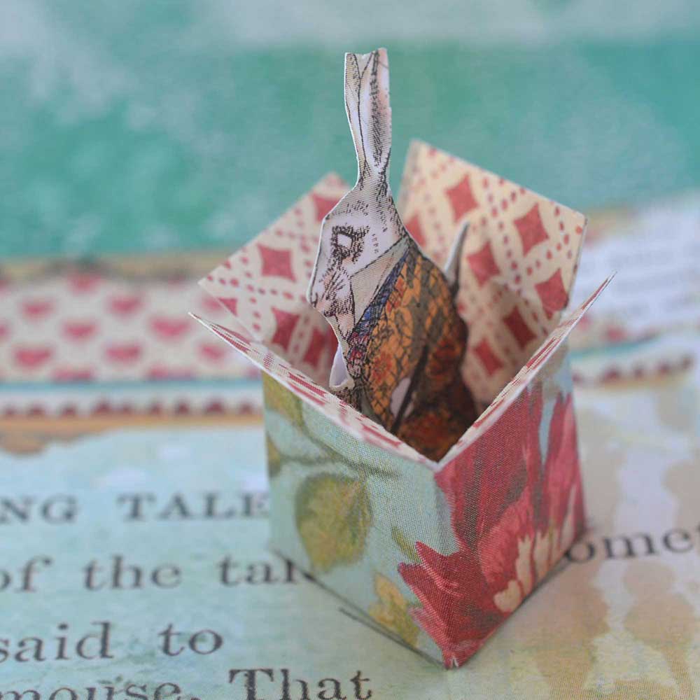 Alice in Wonderland Pop up Book in a Tin. One of my favorite papers is the Stamperia Alice. I decided to make a pop up book and a diorama all in one. I have listed this in my Etsy Shop.